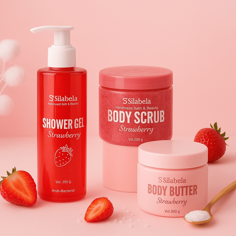 - Finish with the Strawberry Body Butter for deep hydration and long-lasting softness.