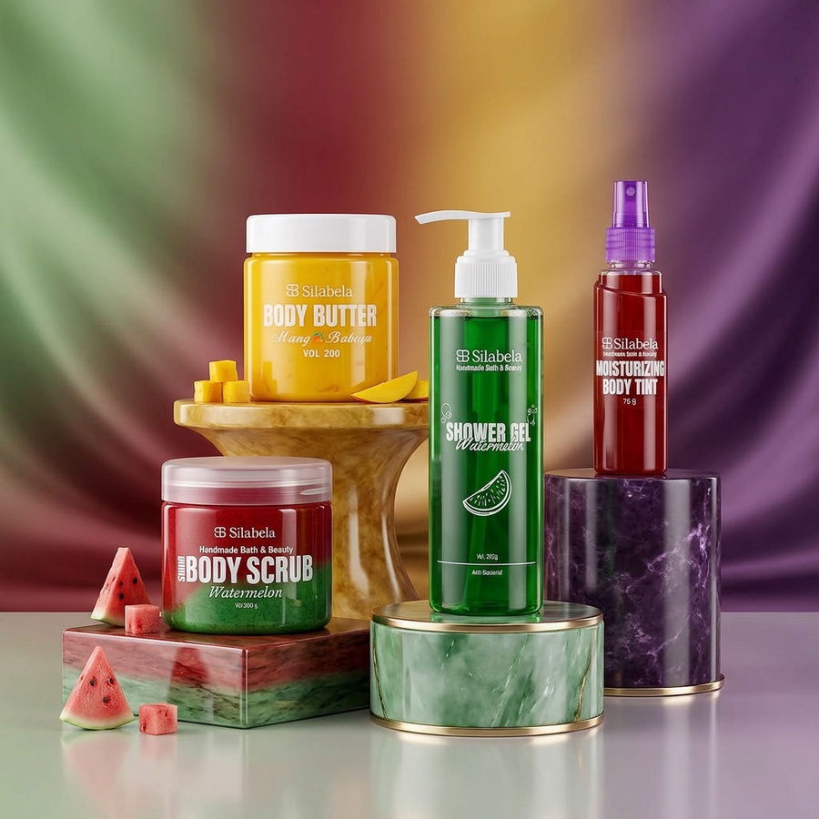 بوكس Tropical Fresh Glow من Silabella بيجمع بين انتعاش البطيخ ولمسة المانجا الحلوة علشان يديكي روتين كامل يخلي بشرتك ناعمة، فريش وجذابة طول اليوم 🍉🥭✨
